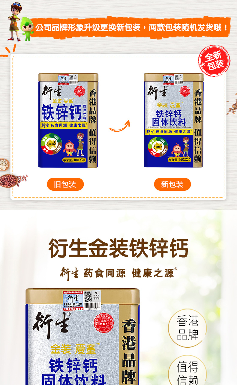 衍生金裝愛童鐵鋅鈣固體飲料